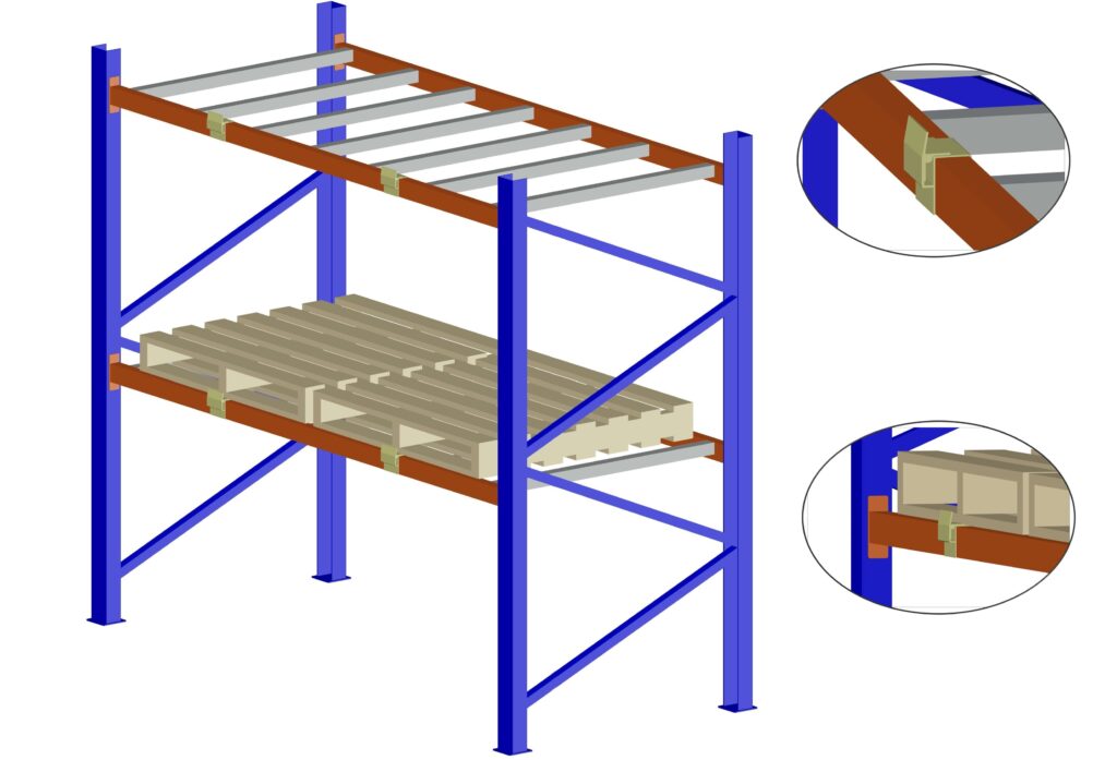 パレットをラックに乗せるときには、ガード部分がお辞儀するため邪魔にならず外から中はスムーズにパレットを積めます。